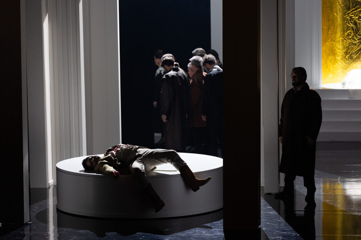 Cette beauté visuelle encadre un drame où l’effusion des sentiments s’exprime paradoxalement par l’immobilité. S’agit-il d’un choix esthétique pleinement assumé ? Le seul moment de mouvement notable intervient au début du troisième acte, lors de la noce forcée de Lucia, où les invités esquissent quelques pas de danse. Ce sont alors les regards et les gestes de la main qu’il faut scruter pour deviner l’état intérieur des protagonistes ; une subtilité qui échappe parfois. Les lumières de Mathilde Chamoux prolongent cette esthétique du dépouillement, mettant en valeur la simplicité de chaque tableau sans jamais l’alourdir.