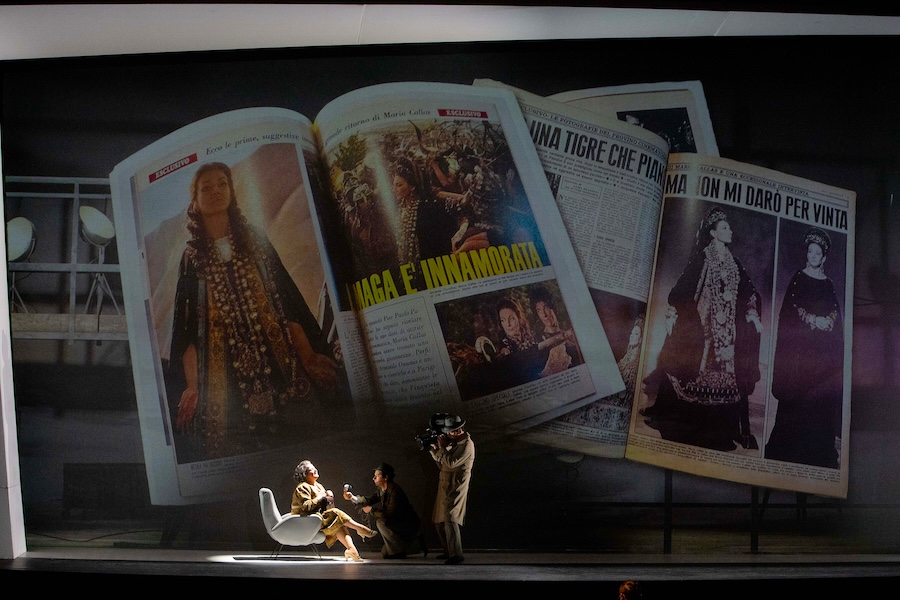 Le premier mérite de l’œuvre est précisément celui-ci : éviter le piège, toujours aux aguets, du musée en musique. Il n’y a aucune trace d’hagiographie, ni pour la diva ni pour le poète. Pas de cartes postales callassiennes, aucun cliché pasolinien.