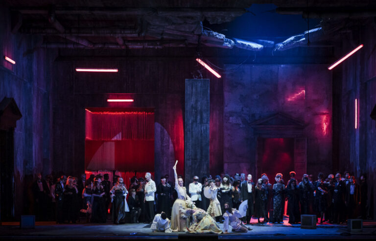 Nelle sue note per il programma di sala, Villalobos introduce il pubblico alle domande chiave emerse nell’elaborazione della sua regia, del tutto attuali: la strumentalizzazione di cause politicamente corrette da parte di élites di potere, l’appropriazione di identità minoritarie per scopi politico-commerciali, il problema dell’identità sessuale e di genere e il frequente fraintendimento del significato originario della cultura “woke”. Nel testo, tali domande trovano, più che risposte, delle proposte di problematizzazione; nella messa in scena vengono tematizzate in punta di penna, sicuramente senza l’arroganza di chi vuole porsi in cattedra. Tuttavia, per chi non abbia letto l’introduzione del programma di sala o non abbia ascoltato la presentazione della Dramaturgie prima della recita, c’è da domandarsi se le soluzioni drammatiche viste siano realmente comprensibili al pubblico. Nelle note introduttive, inoltre, appare discutibile affermare che negli ultimi decenni Un ballo in maschera sia stata e sia vittima di una presunta “cancel culture” per via delle tematiche toccate dal plot, dal momento che dal 2000 ad oggi sono state realizzate numerose produzioni dell’opera in tutti i teatri del mondo. Che il titolo non sia popolare quanto Traviata o Aida non significa che sia oggetto di boicottaggio culturale per una presunta “scomodità” dei suoi temi.