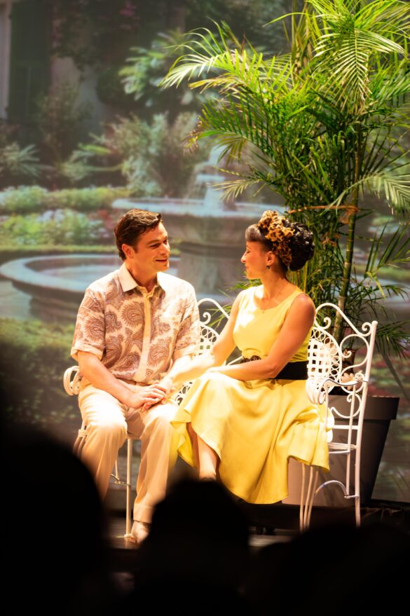 On ne s’étendra pas sur l’intrigue tellement connue de cette bande de jeunes gens sans le sou qui décident d’aller passer leurs vacances sur la Côte d’Azur aux frais de « la princesse », en l’occurrence la tante du héros. Amélie Tatti interprète la jeune première Mimi. La voix de soprano est belle, chaleureuse et veloutée, cependant sa diction manque de clarté, ce qui est dommage dans ce genre d’ouvrage. On peut regretter que la fin de son aigu conclusif dans l’air « Je l’aime et puis c’est tout » soit lâchée. Tout le reste était parfait. Ses qualités de comédienne ne sont plus à démontrer.