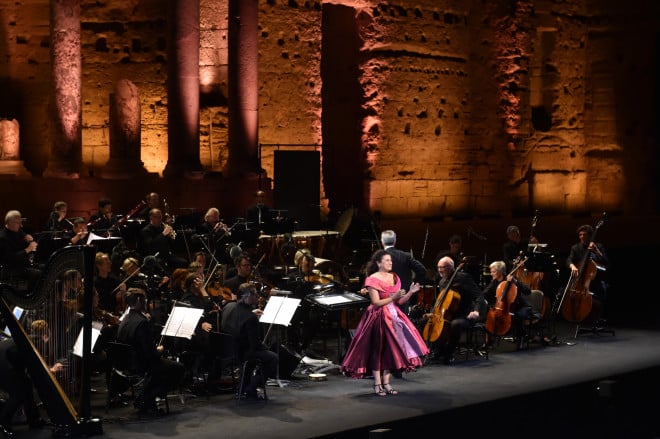 La phalange que la diva a réunie autour d’elle, les Musiciens du Prince-Monaco, sous la direction de Steven Mercurio, sont présentés comme « les meilleurs musiciens internationaux sur instruments anciens », salués « par une presse unanime » (programme des Chorégies). Qu’on nous permette de tousser et de ne pas hocher du bonnet, tant le résultat sonore n’est pas à la hauteur de la cantatrice. L’orchestre arrive sur le plateau avec des sourires triomphants et décontractés, sûr de sa force. Mais il en faut davantage pour être toujours parfaitement justes, ensemble et surtout, inspirés.