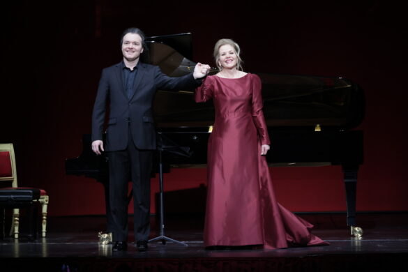 Le public de la salle comble du Piermarini[1] a accueilli hier soir, après plusieurs années d’absence, le retour de la soprano américaine et du pianiste russe par excellence, avec une jubilation et des applaudissements sans fin à l’issue d’un programme de lieder et de mélodies extrêmement raffiné. Ils ont ainsi, dans une harmonieuse concordance de respirations, de phrasés, de couleurs, de virtuosité sonore et de choix interprétatifs, accompagné le public dans un voyage musical idéal à travers les pages intenses et enivrantes de Schubert, Liszt, Rachmaninov et Duparc[2].