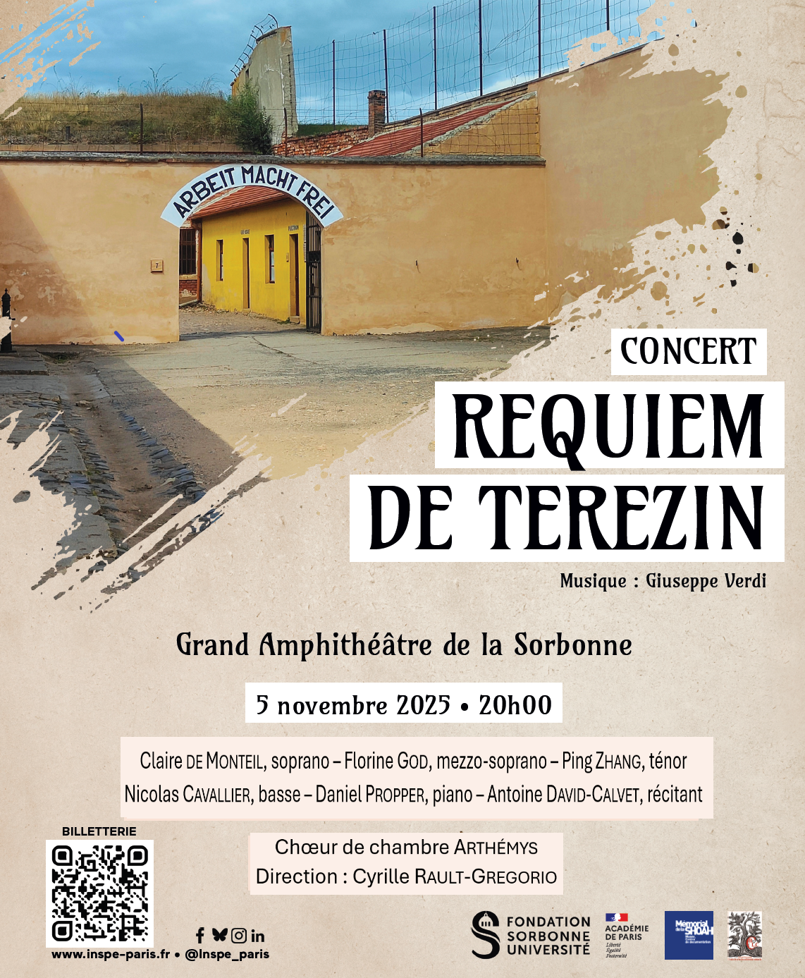 Tout juste nommé artiste en résidence à l’INSPE de Paris pour l’année universitaire 2025-2026 le chœur participe au concert consacré au Requiem de Terezin pour lequel son effectif a été exceptionnellement étoffé.