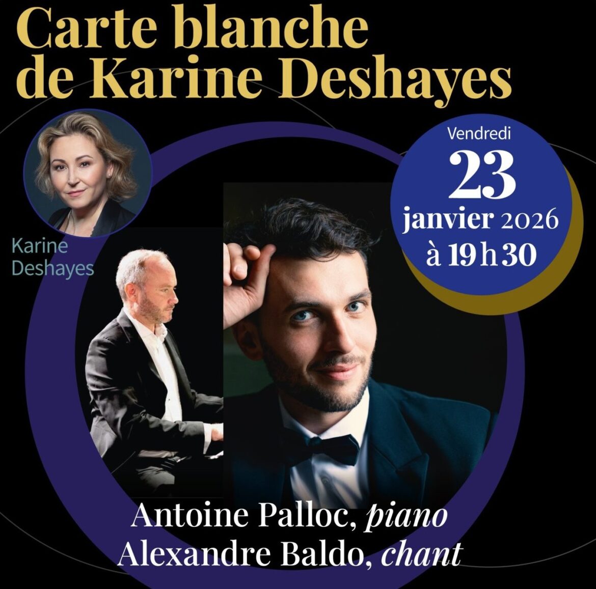 Le vendredi 23 janvier aura lieu le concert « Carte blanche de Karine Deshayes » au Conservatoire Rachmaninoff de Paris. La chanteuse, qui vient tout juste de triompher en Norma au TCE, a ainsi choisi de mettre en lumière l’un des jeunes chanteurs français les plus prometteurs de la nouvelle génération : Alexandre Baldo.