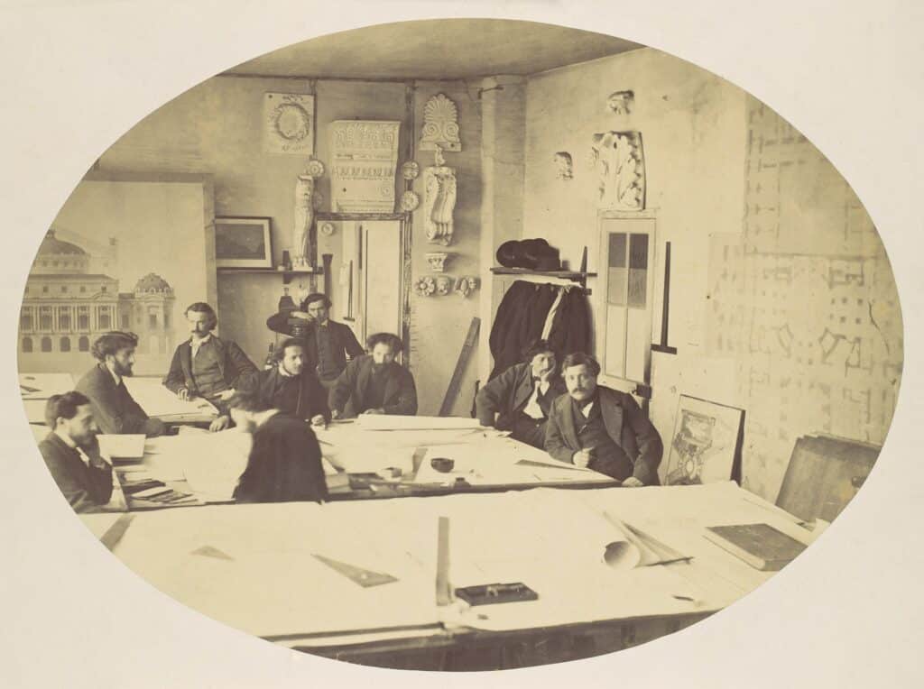 Charles Garnier et son équipe lors de la conception du nouvel opéra de Paris (Louis-Émile Durandelle)