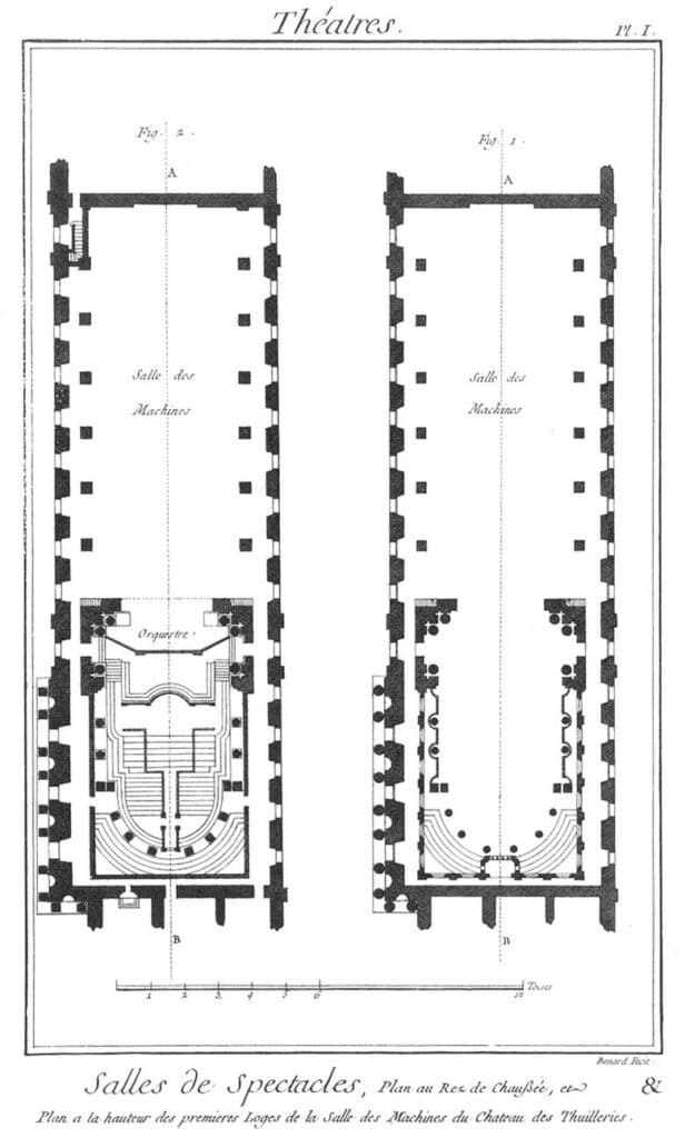 Plan de la Salle des Machines du Chateau des Tuileries (Encyclopédie de Diderot et d'Alembert), Paris, 1772). - © CC BY-SA 4.0
