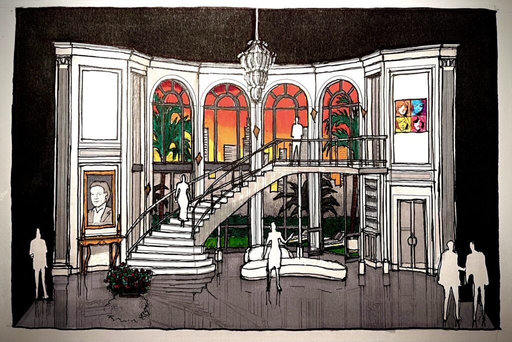 J’ai transposé tout cela à Los Angeles : Gabriel et Rosalinde (alias Gaby et Rosy !) sont des milliardaires de Sunset Boulevard ; ainsi, au premier acte, on se trouve dans une villa à la Dynastie, avec un immense escalier, un grand portrait d’Eisenstein et un autre de Rosalinde façon Andy Warhol. Alfred est un chanteur à la George Michael : il fallait que Rosalinde soit troublée par quelqu’un appartenant à un autre monde que le sien !