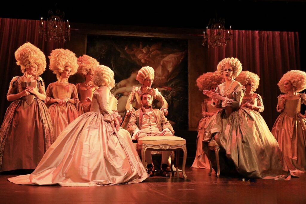 La Chauve-Souris, c’est avant tout une comédie humaine, une étude de mœurs satirique qui dépeint des personnages à la vie monotone et routinière, rêvant d’aventures ! L’action repose sur les caractères bien plus que sur l’époque à laquelle l’œuvre a été composée, ce qui offre une certaine liberté… Plutôt que de transposer l’action à notre époque, j’ai choisi les années 1980 : celles de mon adolescence. C’était une période d’effervescence et de liberté : Madonna, Whitney Houston, George Michael, les blockbusters hollywoodiens (Star Wars, E.T.), les séries télévisées (Dallas, Dynasty, Miami Vice)… Tout semblait possible. On vivait dans un monde de créativité, de fantasmes et de gloires éphémères — exactement comme dans La Chauve-Souris, où les personnages jouent à être quelqu’un d’autre : Adèle rêve de théâtre, Rosalinde se fait passer pour une comtesse hongroise, Eisenstein devient marquis, le directeur de prison, « Chevalier »…